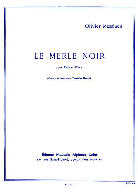 Merle Noir - Flute et Piano by Olivier Messiaen (1908-1992). For flute and piano. Score and part. Published by Alphonse Leduc (AH.AL21053).